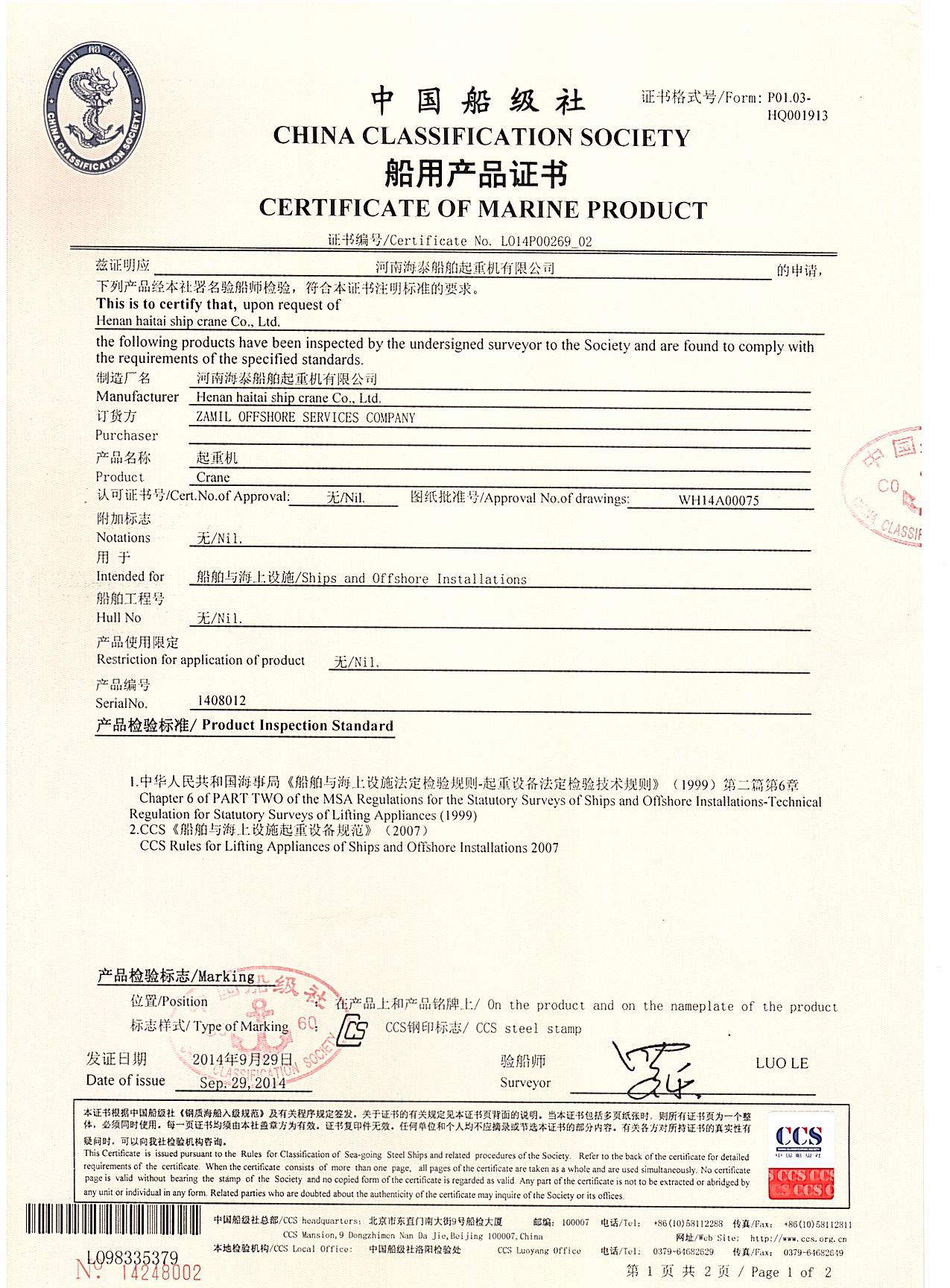 CCS船檢證書