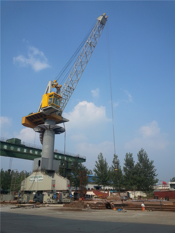 門座起重機(jī),適用于岸線較長(zhǎng)的碼頭,如船廠的船臺(tái)、舾裝碼頭和萬(wàn)噸級(jí)泊位散雜貨碼頭等。一般采用單臂架鋼絲繩變幅、單臂架齒條變幅或四連桿臂架齒條變幅結(jié)構(gòu)形式,配用吊鉤或抓斗裝卸貨物。該類產(chǎn)品具有工作幅度大、起升高度高、速度快、運(yùn)轉(zhuǎn)平穩(wěn)可靠、作業(yè)效率高等特點(diǎn)。